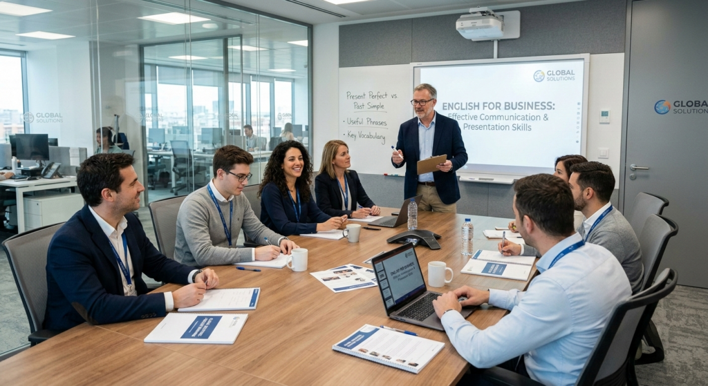 Programas ejecutivos enfocados en liderazgo y toma de decisiones. Incluyen vocabulario avanzado para presentaciones estratégicas, networking internacional y gestión de crisis en inglés.